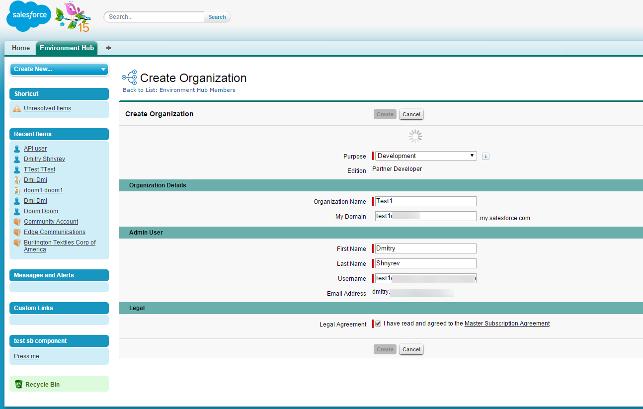 Какими-то хитрыми манипуляциями (алгоритм не подскажу, потому что щелкал на все подряд) связал свой старый партнерский акк с обычным пользователем (даже слишком обычным - я его когда то для тестов создал, и просто по привычке использовал везде при регистрациях) и через salesforce partner community создал кейс с просьбой установить Environment Hub на орг с таким-то ID (кстати обычный дев орг). Где-то через неделю получил сообщение на почту что приложение установлено.